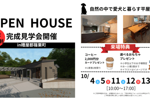 【完成見学会】自然の中で愛犬と暮らす平屋住宅in糟屋郡篠栗町 【10月4日(土)~10月5日(日)、10月11日(土)~13日(月)】